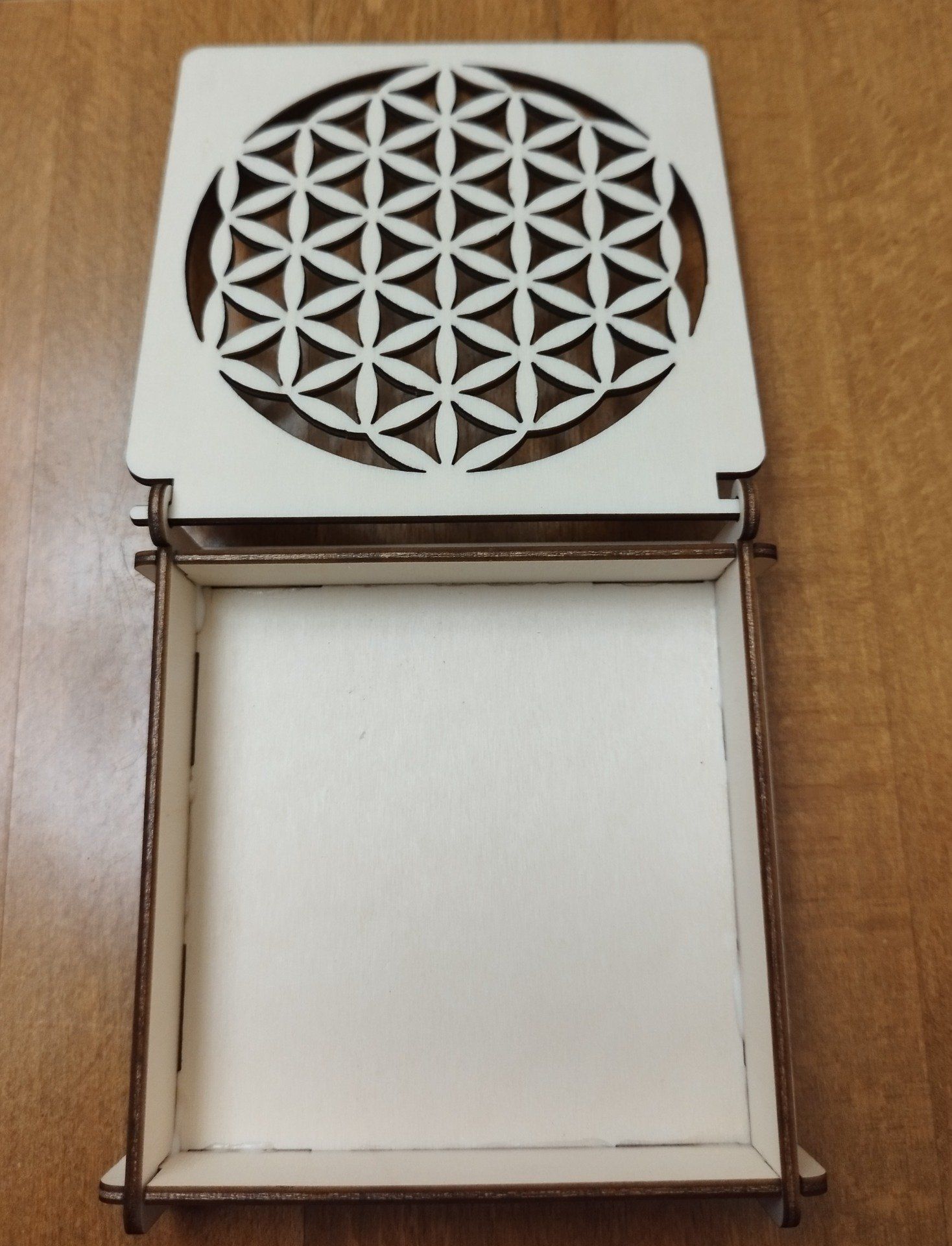 Mini boîte en CP de peuplier avec motif déco découpés dans le souvercle.