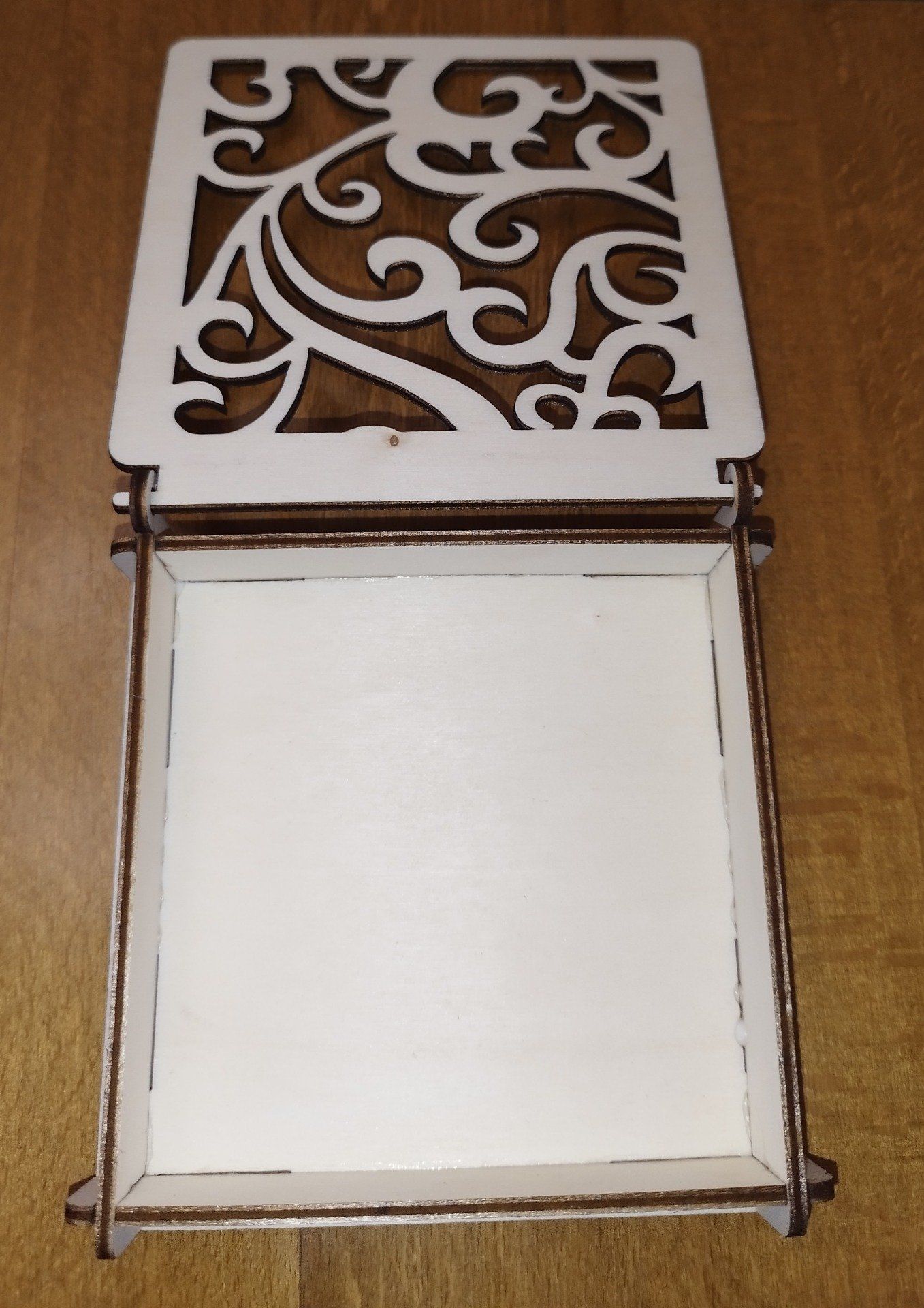 Mini boîte en CP de peuplier avec motif déco découpés dans le souvercle.