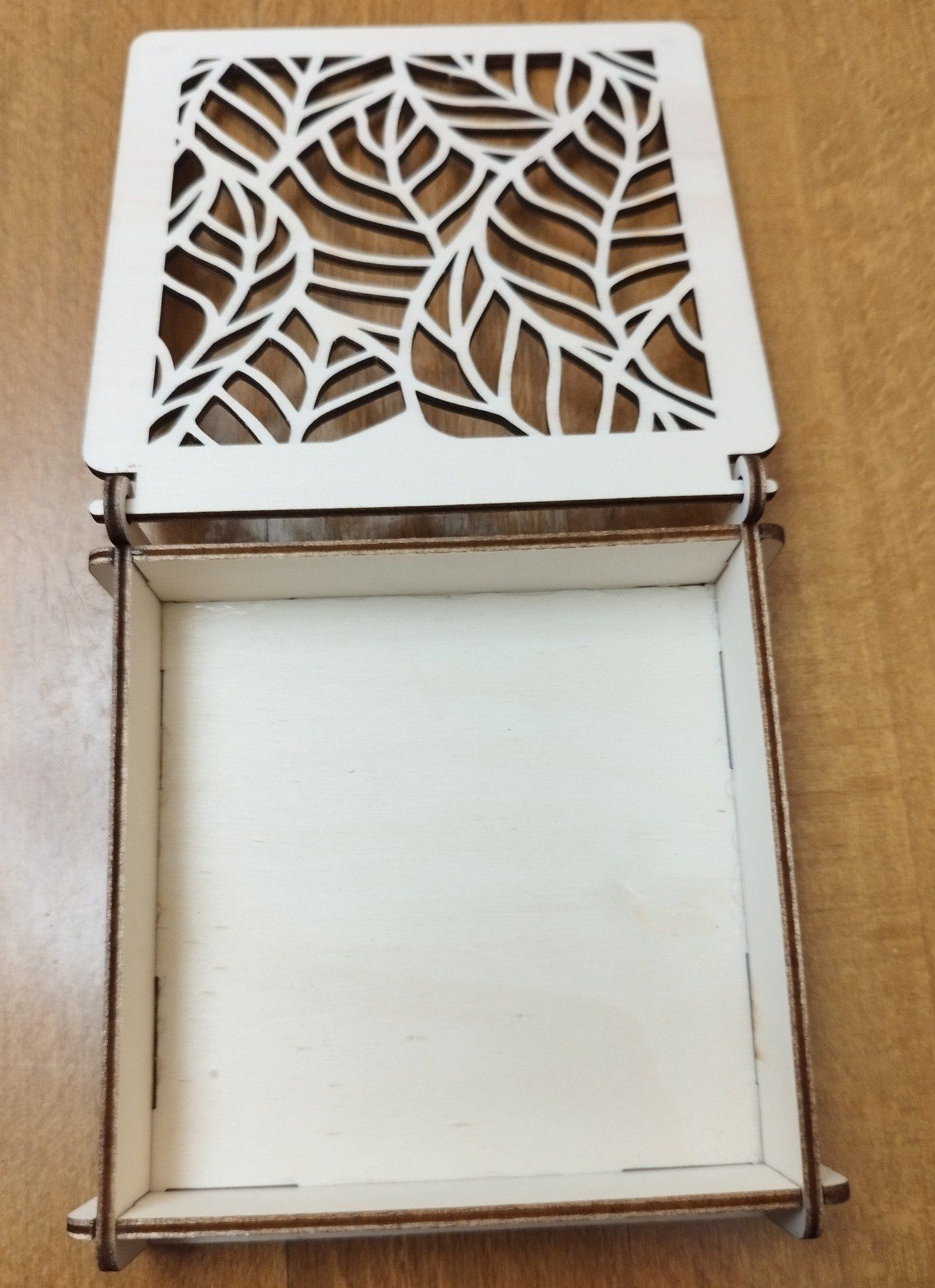 Mini boîte en CP de peuplier avec motif déco découpés dans le souvercle.
